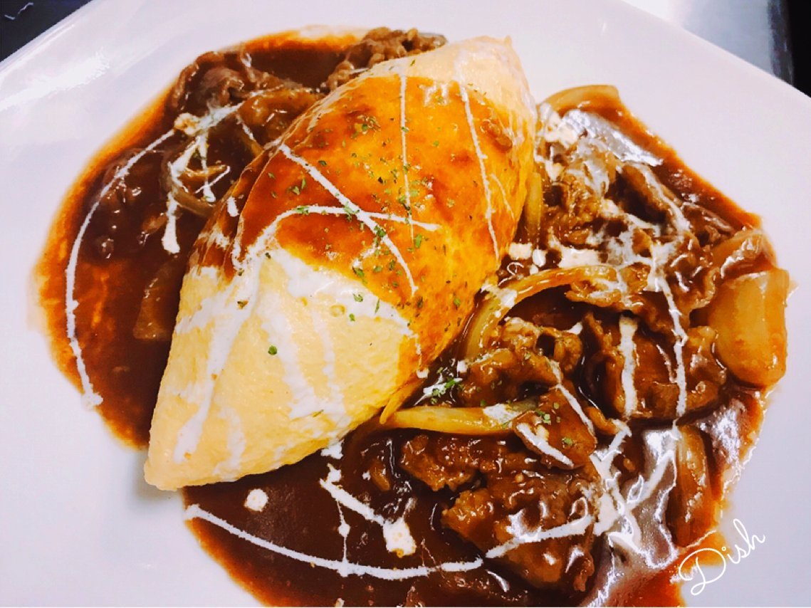イブはご馳走!今日は定番のハッシュドビーフオムライスなんていかが?わさだのオムライスです!\(//∇//)\