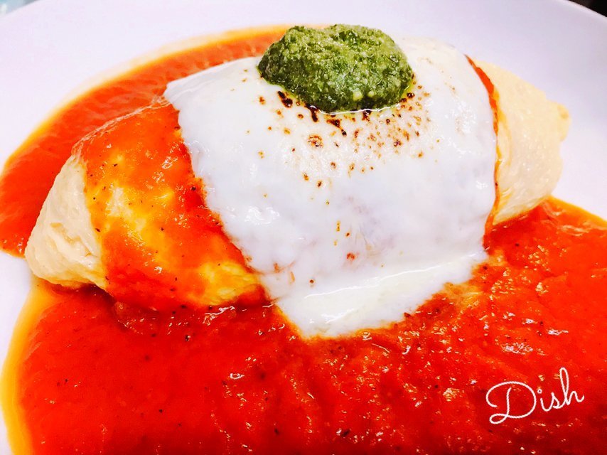 モッツァレラチーズとバジルのトマトソースオムライスはわさだのイタリアンっぽいオムライス! (つ’ワ’c)ガオッ!ガオッ!