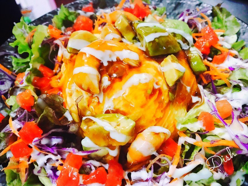 Dishといえばサラダオムライス!ってくらい有名メニューなエビとアボカドのサラダオムライス!わさだのメニューです!\(//∇//)\