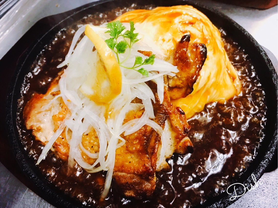 チキンレモンステーキは熱々鉄板のジュージューなわさだよオムライス!\(//∇//)\