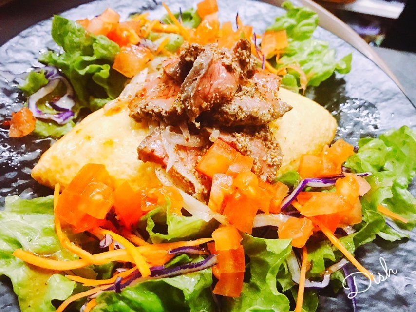 ローストビーフサラダオムライスはお肉もお野菜もいっぱい取りたいってわがままオムライス!\(//∇//)\