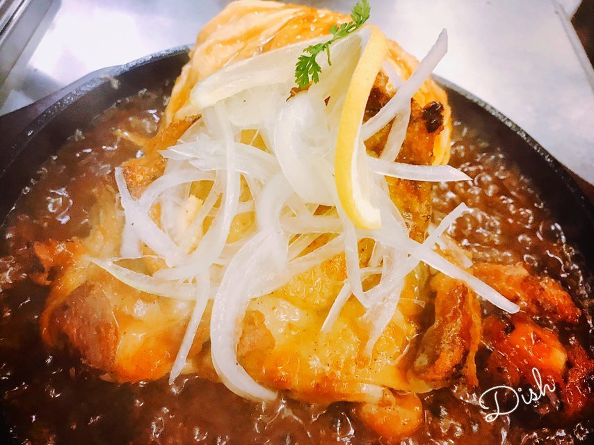 チキンレモンステーキオムライスは熱々鉄板で供されるわさだのオムライス! (つ’ワ’c)ガオッ!ガオッ!