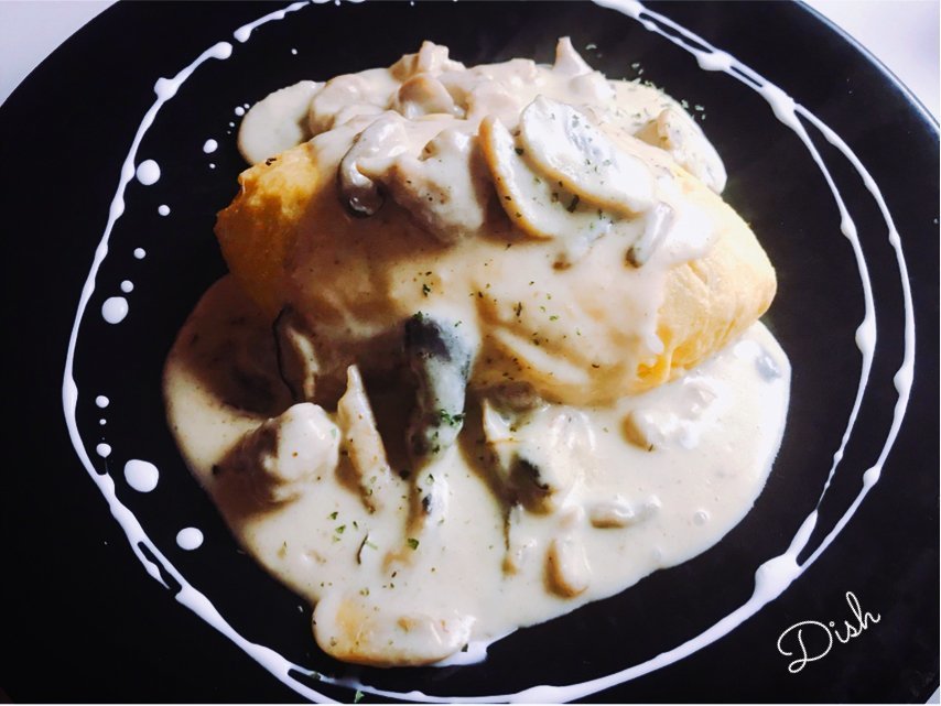 チキンポルチーニクリームのオムライスはポルチーニきのこの香りがおいしーオムライス!\(//∇//)\