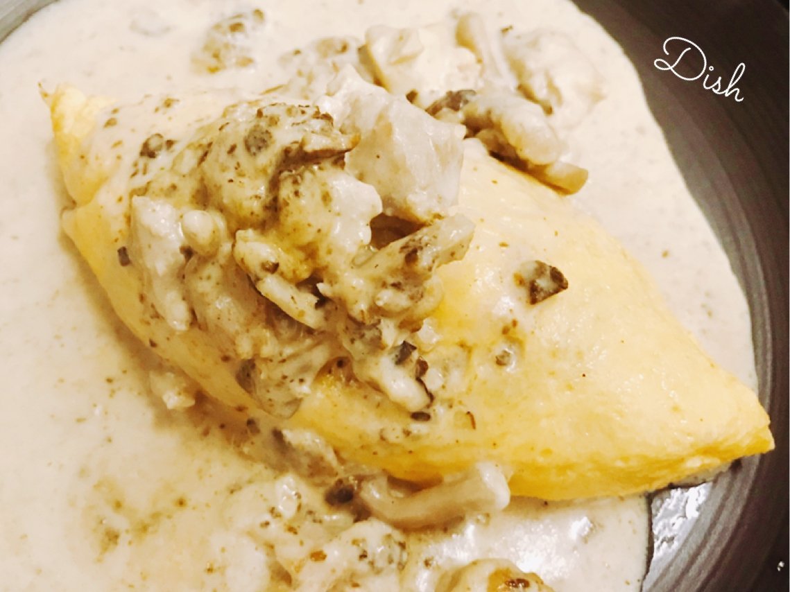 チキンポルチーニクリームオムライスはきのこの出汁がおいしークリームオムライス\(//∇//)\