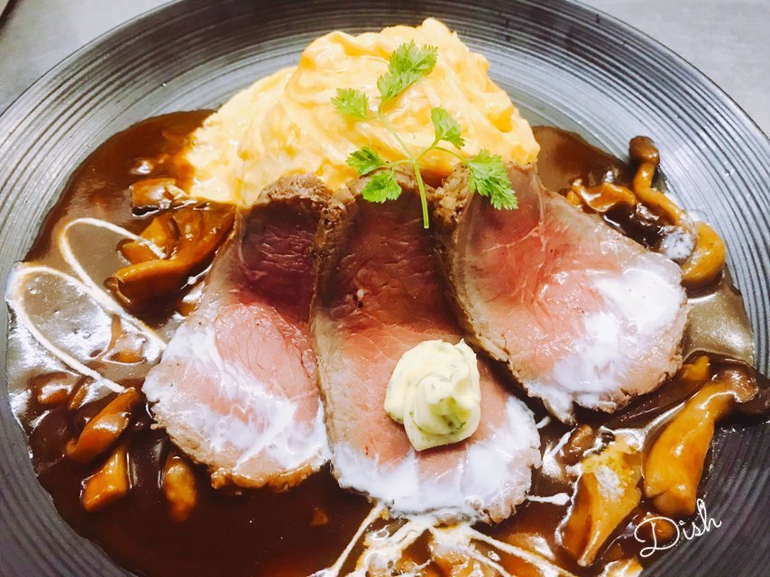 ローストビーフのトリュフソースオムライスはトリュフの香りがリッチなオムライス\(//∇//)\