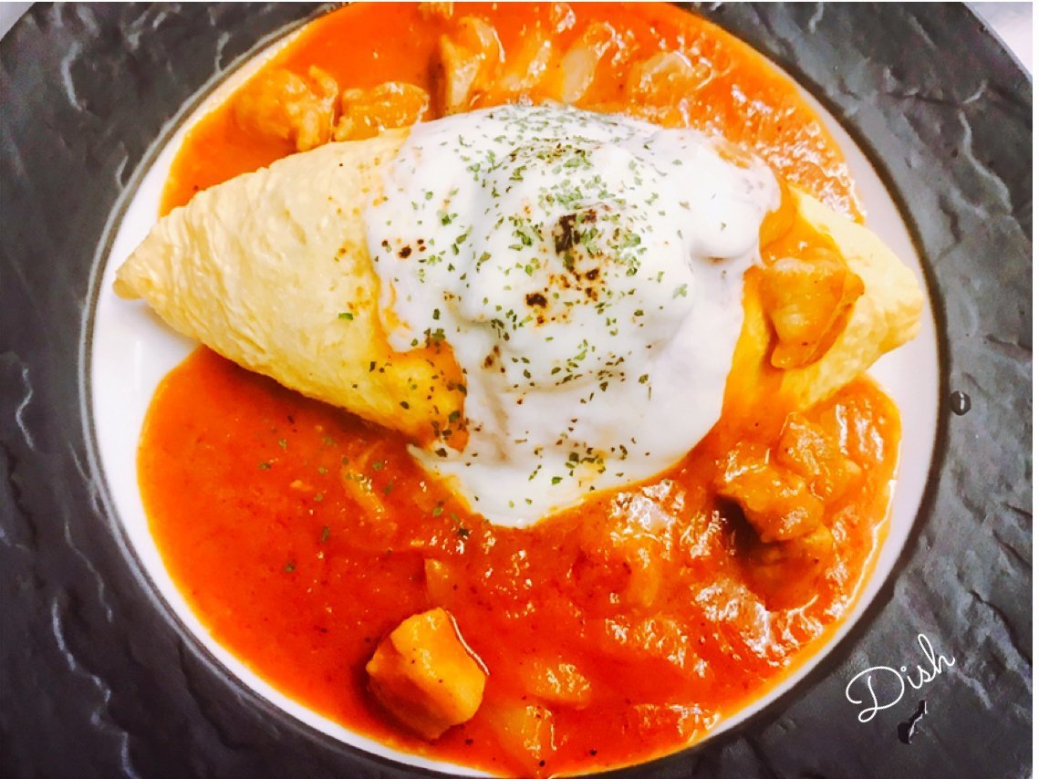 モッツアレラチーズとチキントマトのオムライスはとろーりチーズかおいしーわさだの人気オムライス!\(//∇//)\