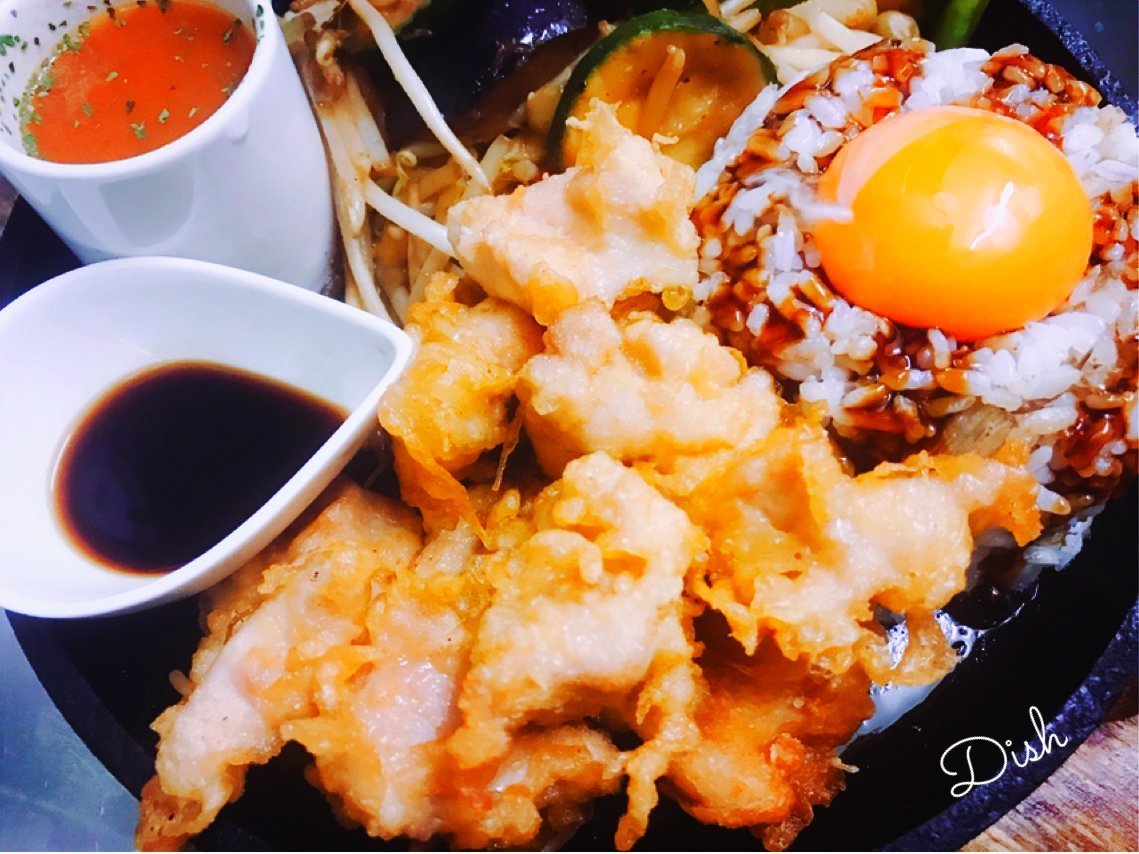とり天とビーフライスの鉄板プレート!わさだの新登場メニュー!