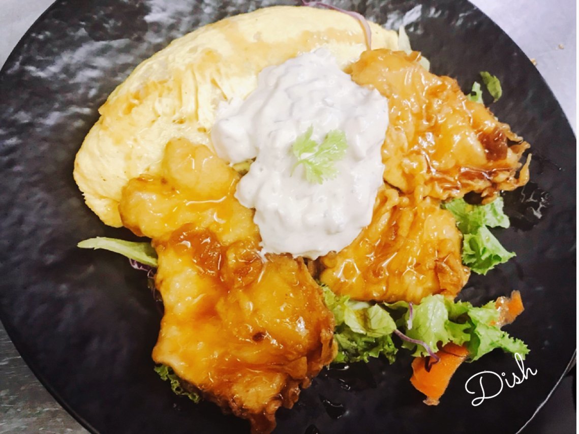 チキン南蛮のオムライスはたっぷりなタルタルソースがおいしーわさだのオムライス\(//∇//)\