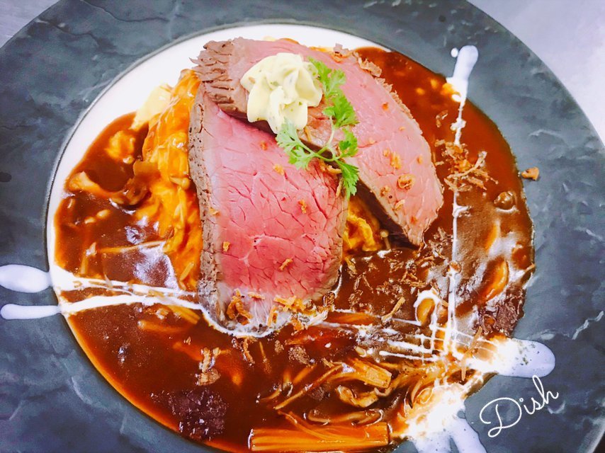ローストビーフのトリュフソースオムライスはちょっとリッチなオムライス\(//∇//)\