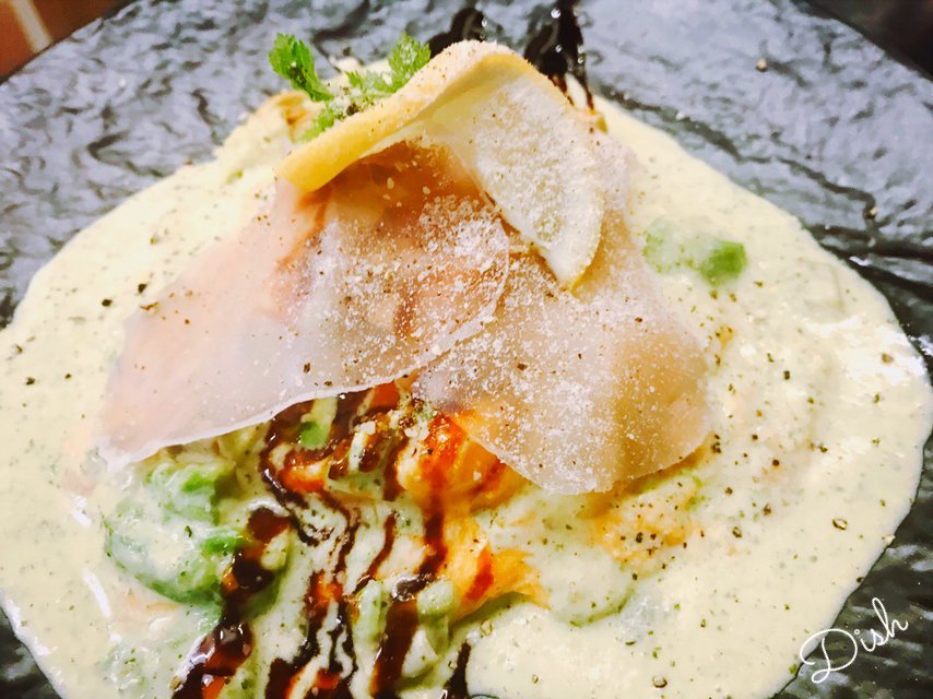 生ハムとバジルクリームオムライスはバジルの香りが爽やかなわさだのオムライス\(//∇//)\