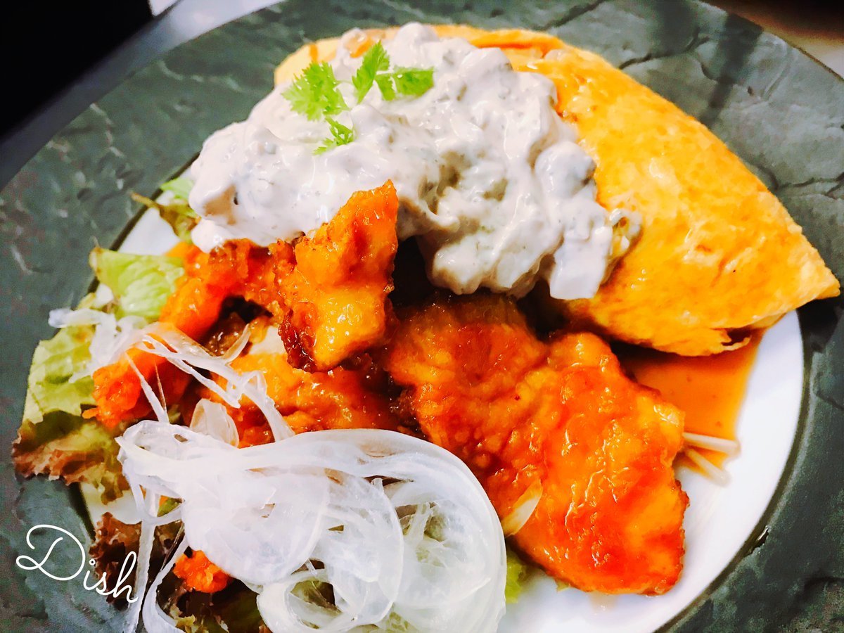 チキン南蛮のオムライスは特製のタルタルソースたっぷりかかったわさだのオムライス\(//∇//)\