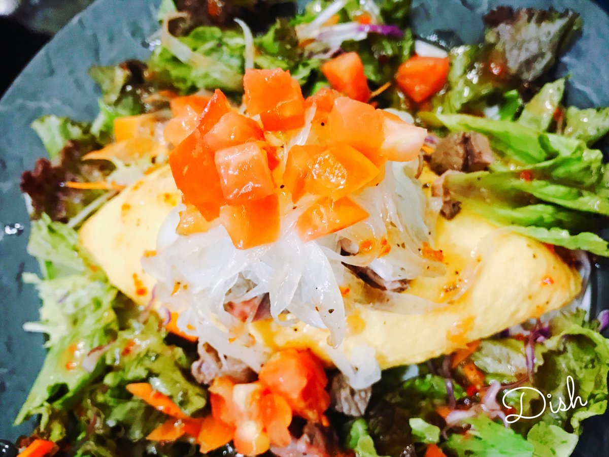 ローストビーフのサラダオムライスはお肉もお野菜もたっぷり食べられるわがまま叶えてくれるオムライス!