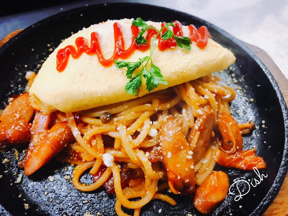 極太麺を使ったナポリタンにオムレツのってさらに鉄板ジュージュー!食べるしかないナポリタンはわさだのメニュー\(//∇//)