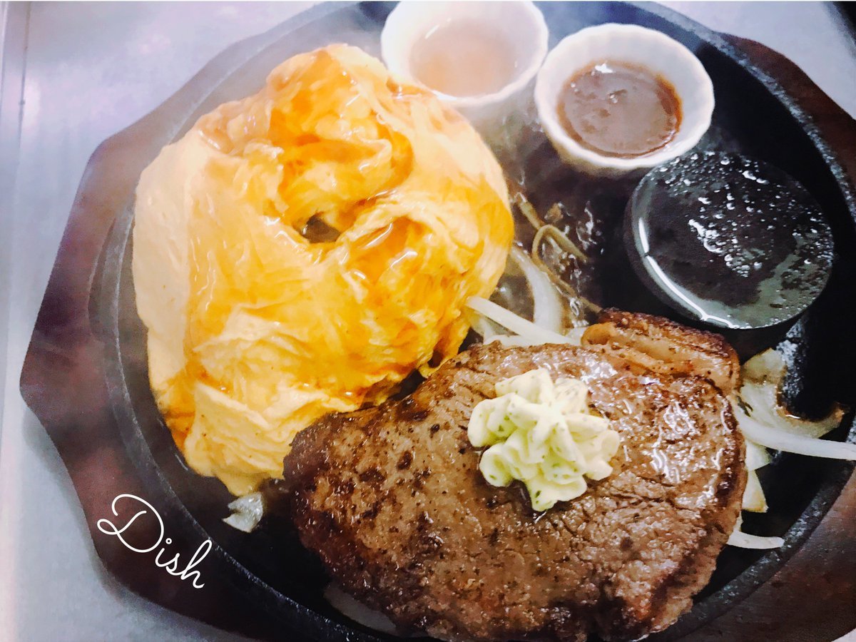 Dish全店熱々鉄板ステーキオムライスご用意してます\(//∇//)\