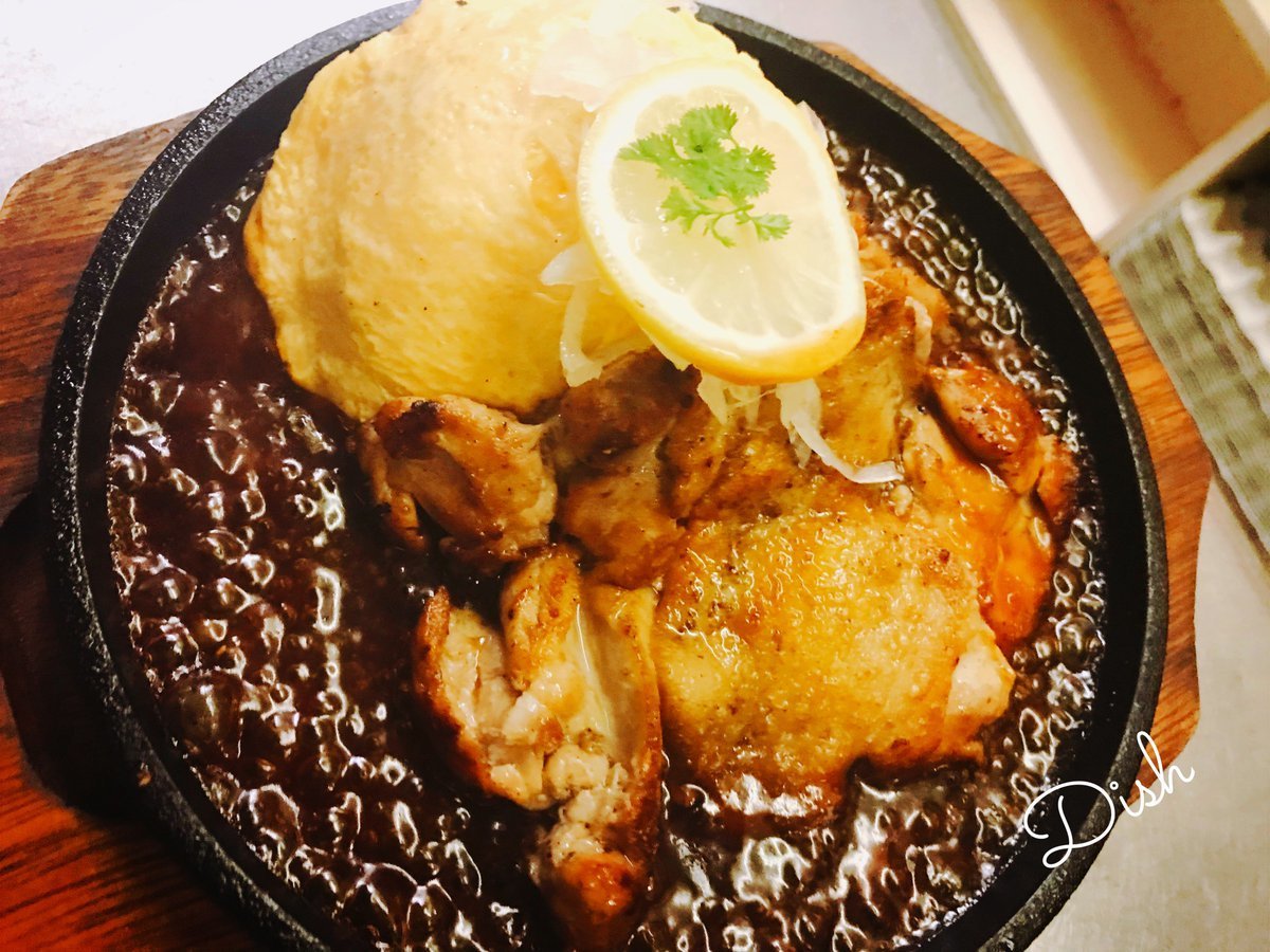熱々鉄板のチキンレモンオムライスはパリッとした皮がおいしーわさだのオムライス\(//∇//)\
