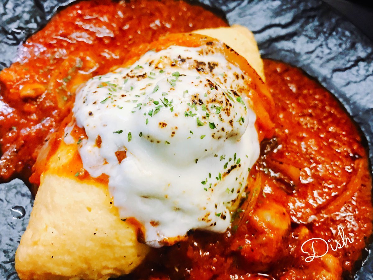 モッツアレラチーズとチキントマトのオムライスはのびーるチーズがおいしー (つ’ワ’c)ガオッ!ガオッ!