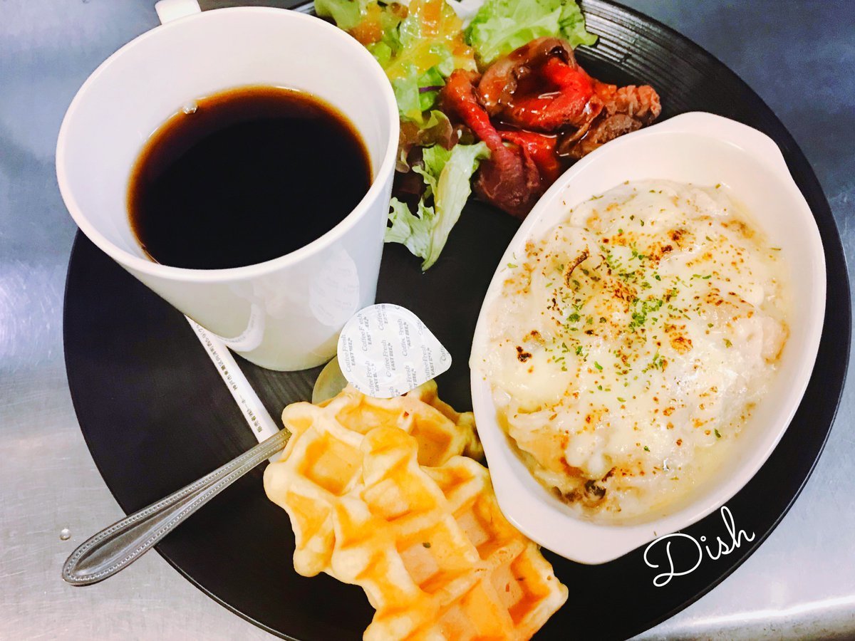 本日はわったん全館おやすみとなっております!西大分本店は通常営業!\(//∇//)\お写真はわさだ店のワッフルとグラタンセットです!