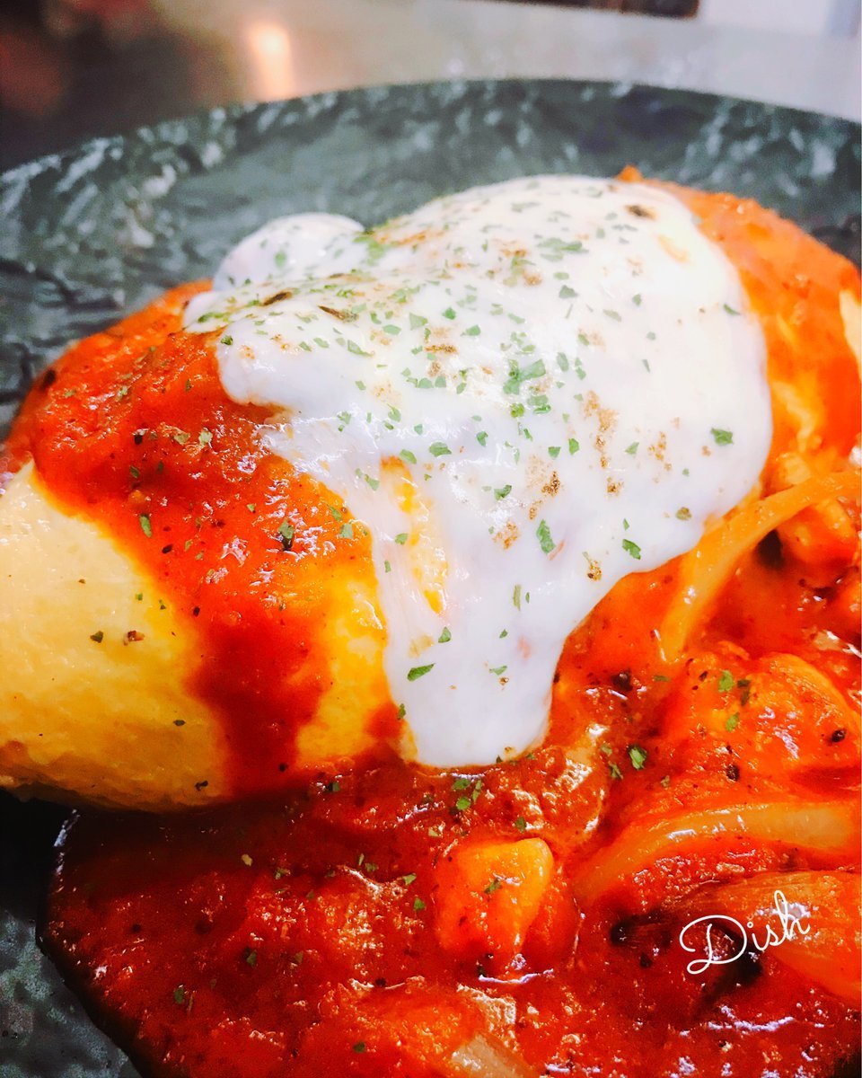 ただいまわさだ店は平日小学生以下のお客様全メニュー半額!親御さまのご負担をすこしでも軽減できたらと考えてます。お写真はトマトモッツアレラオム!お食事のお時間がいつも癒しの時間であることをDishは願ってます。