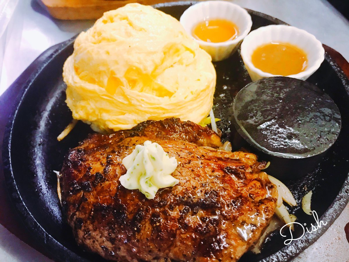 分厚いステーキ!いっぱいスタミナつけて抵抗力高めてくださいませー!平日小学生以下半額ももうすぐおわりーいっぱい食べて元気いっぱいにしてもらえると嬉しいです\(//∇//)\お食事のお時間がいつも癒しの時間であることをDishは祈ってます\(//∇//)\