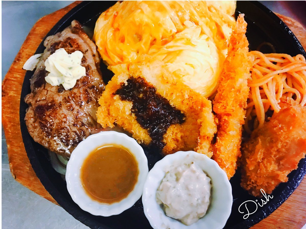 ミニステーキにエビフライにカキフライにチキンカツとてんこ盛りの大人のお子様ランチ!こちらは大人なのでお子様ランチ半額ではありません!ごめんなさい!こんな時期にすこしでもたのしー時間を過ごしていただけたらDishは嬉しいです!