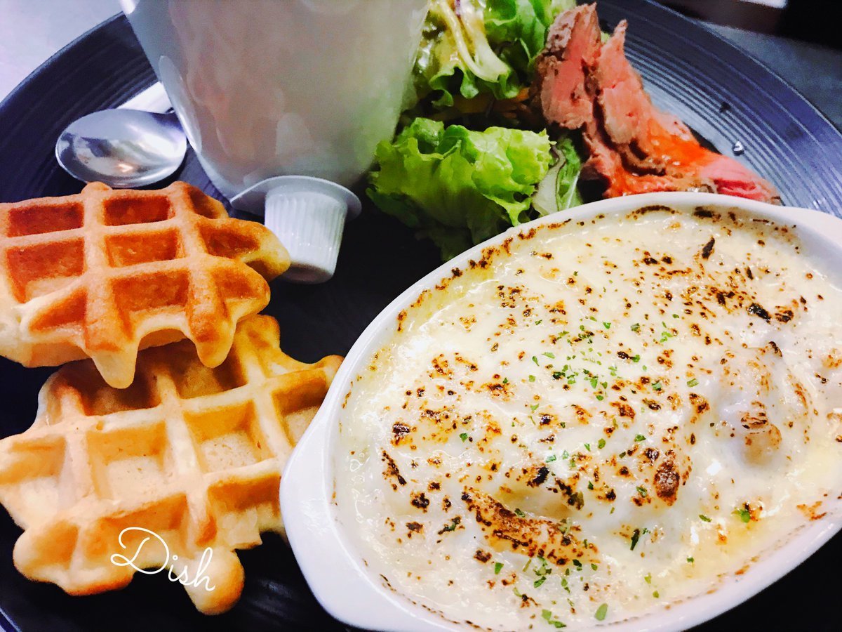 ワッフルにグラタンはわさだの軽食系メニュー!栄養とって免疫力アップですよー!たのしーお食事をご用意してお待ちしてます。