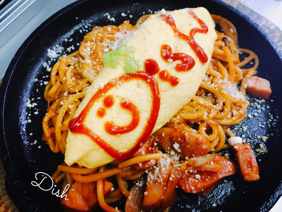 鉄板オムレツナポリタンは熱々鉄板で供されるわさだのメニュー!\(//∇//)\