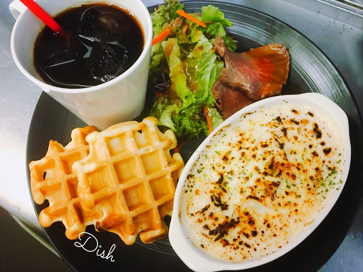 すこし軽めなお食事にワッフルとグラタンのワンプレート!ちょっとおしゃれな気分になれます\(//∇//)\