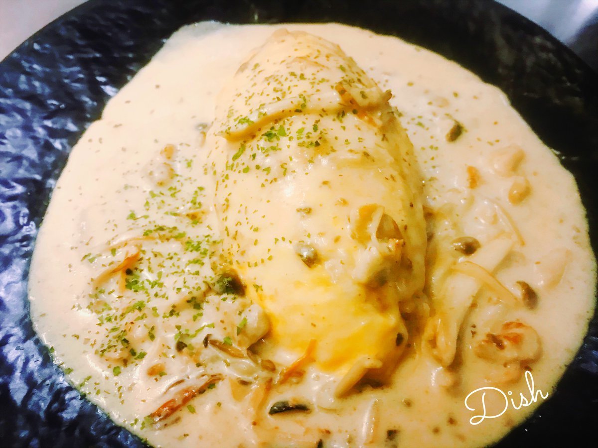 チキンポルチーニクリームオムライスはポルチーニきのこの香りがおいしーオムライス\(//∇//)\