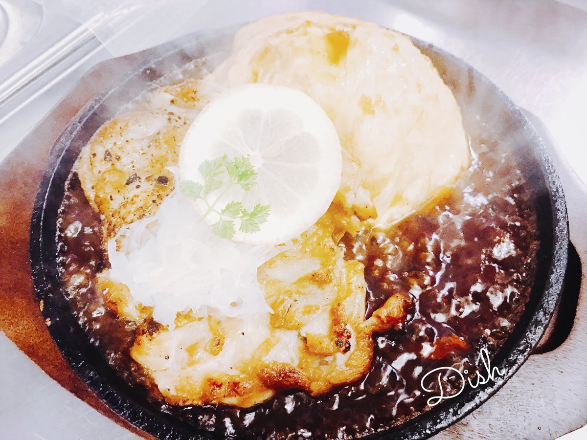 チキンレモンステーキのオムライスは熱々鉄板で供されるわさだのオムライス!いつか熱々なお料理を楽しんでほしいですねー\(//∇//)\
