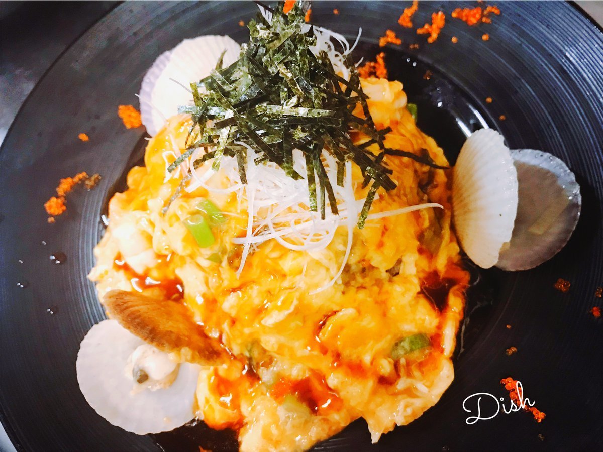 エビとネギのオムライスはDish創業時からあるロングセラーなオムライス!西大分本店はただいまテイクアウトできます!\(//∇//)\