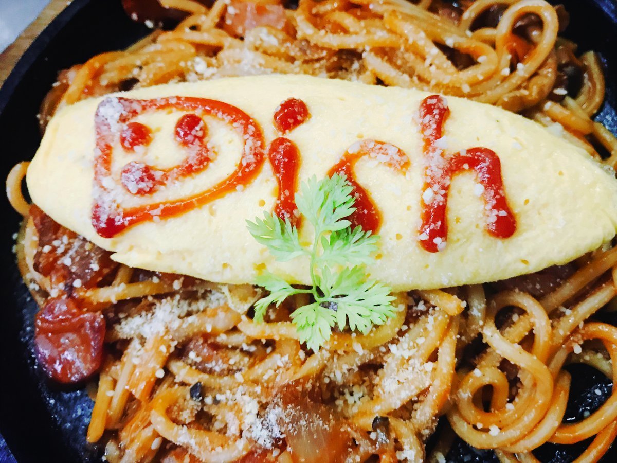 鉄板ナポリタンにオムレツ乗っかったスペシャルなナポリタンはわさだの人気メニュー\(//∇//)\
