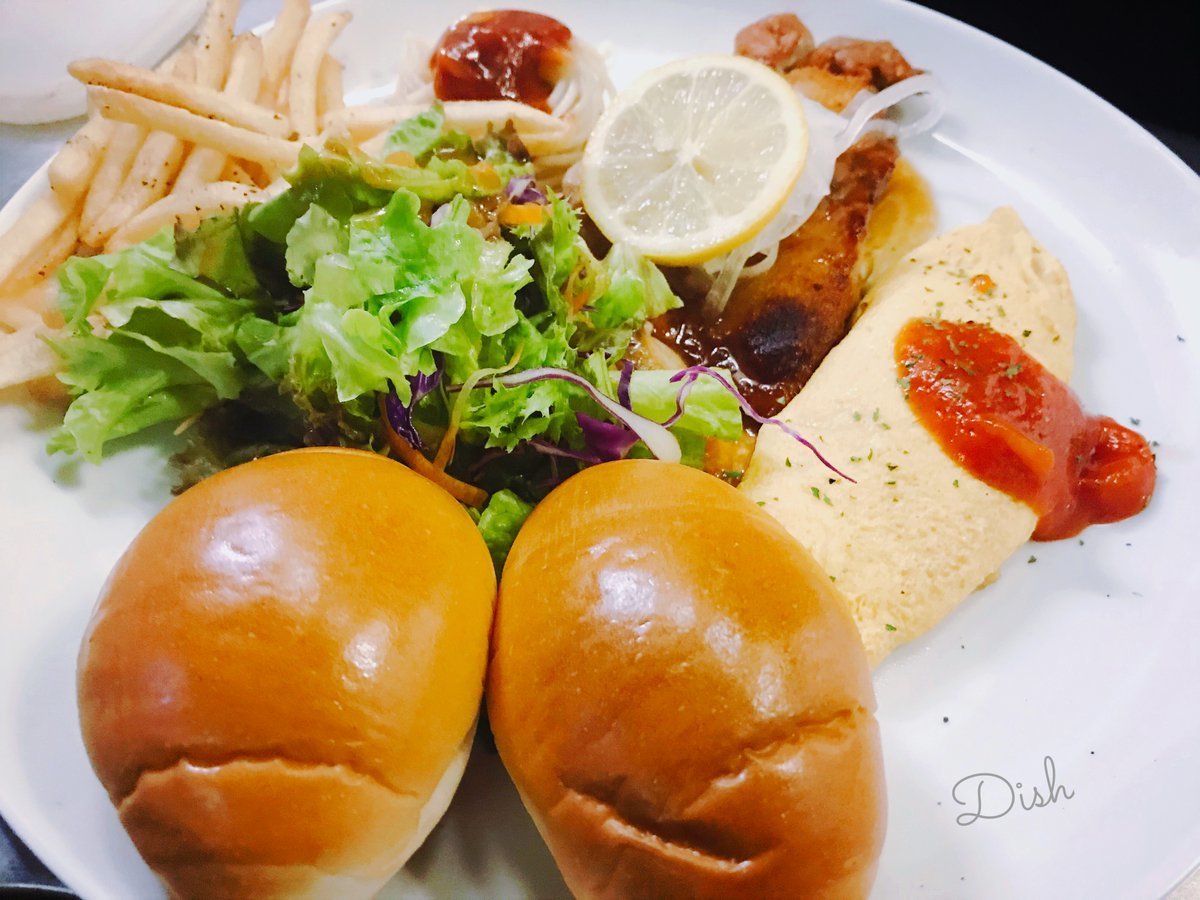 オムレツにレモンチキンソテーにポテトとてんこ盛りなワンプレートはわさだメニュー!軽めなのに満足度最高です!\(//∇//)\