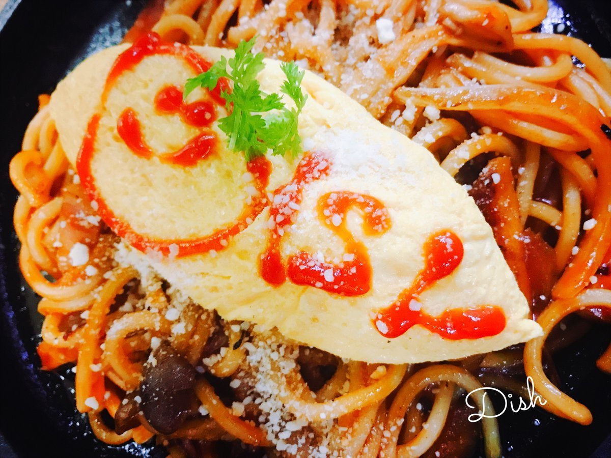 熱々鉄板ナポリタン!ナポリタン用の特製の太麺使用してオムレツ乗ってるわさだ店の人気メニュー!\(//∇//)\
