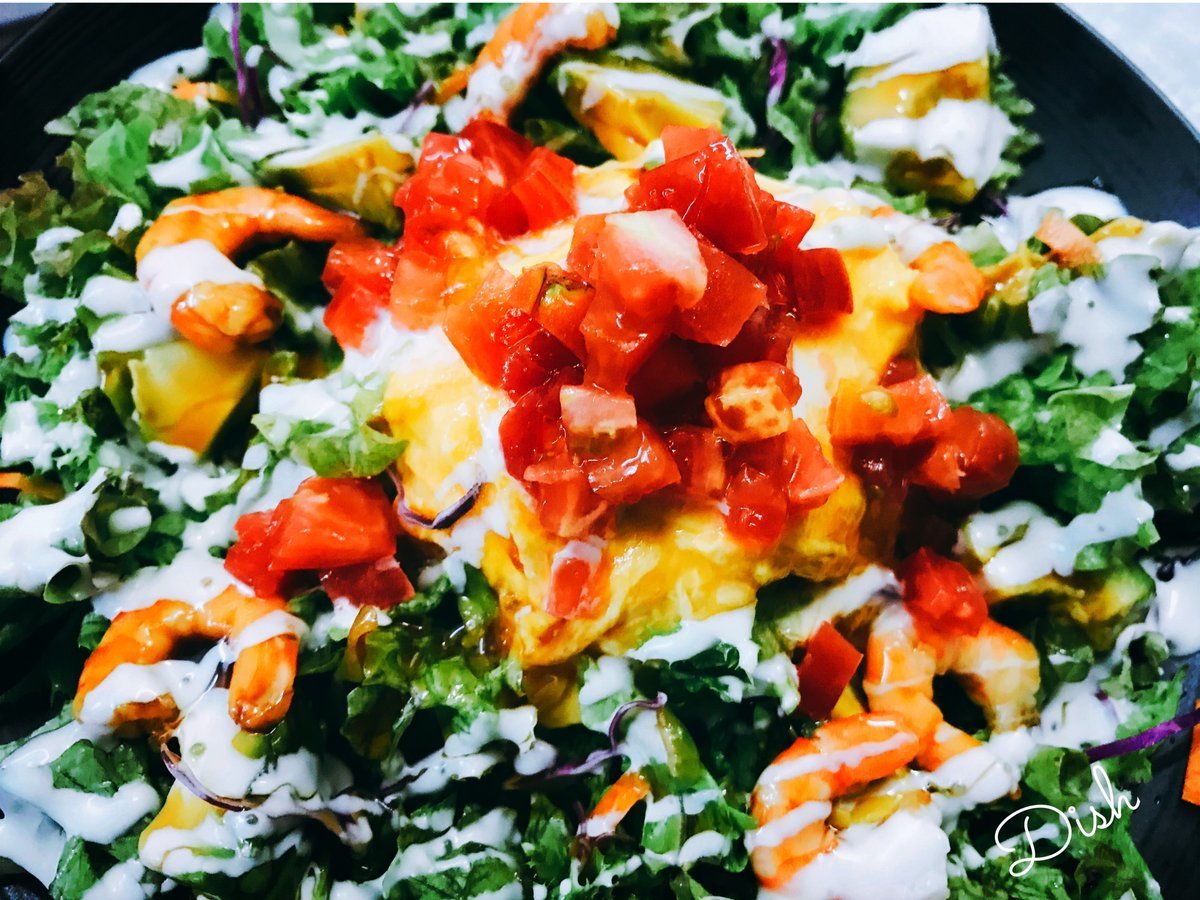 お野菜たっぷり食べてミネラルやビタミンいっぱい取られてくださいませ!エビとアボカドのサラダオムライスはわさだのメニュー\(//∇//)\