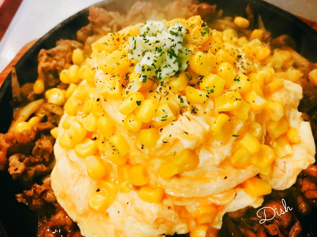 こぼれるコーンのビーフペッパーオムライス!鉄板ジュージュー!いきなり大人気なわさだの新メニューです!\(//∇//)\