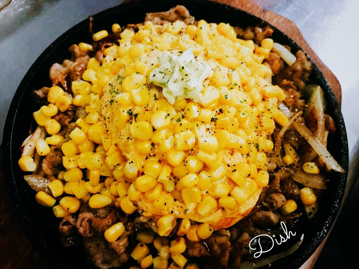 今日はわさだの新作!こぼれるコーンのペッパーオムライス!牛肉ジュージューな激うま鉄板オムライスです!\(//∇//)\