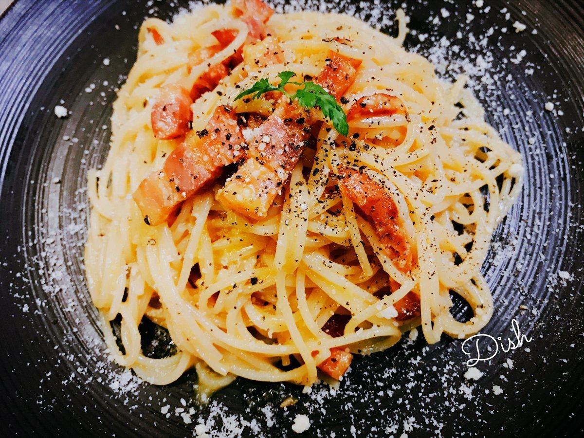 水曜の朝です!本日は珍しく当店のまかない!生クリームを使わないカルボナーラはめちゃおいしーんですかお客様に出すことなくて残念です( ; ; )