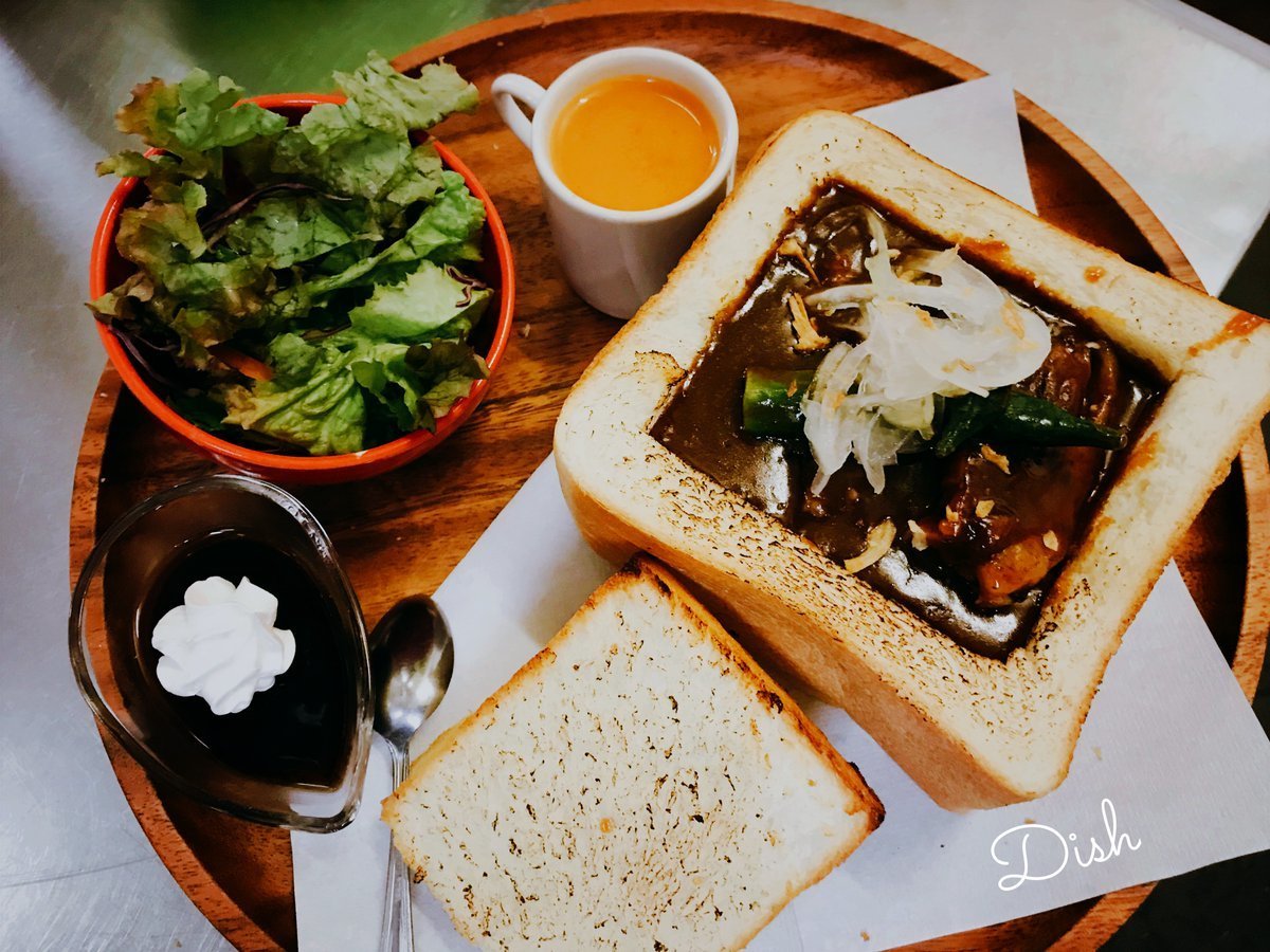ビーフシチューをくりぬいた食パンにいれて器にしたビーフシチュートースト!お腹いっぱいわさだのメニューです!\(//∇//)\