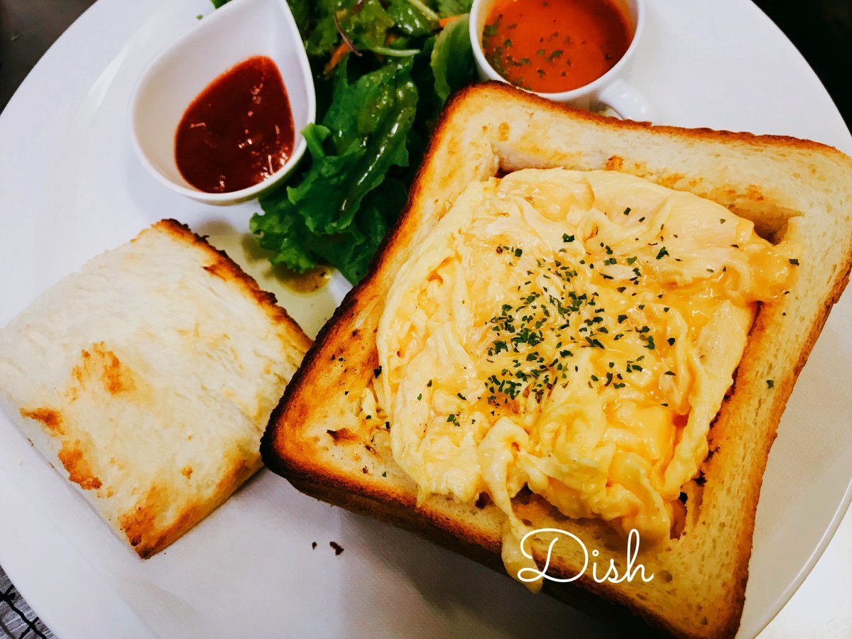 卵たっぷり!食パンくりぬいてスクランブルエッグはいったトーストはわさだのランパス協賛メニュー\(//∇//)\