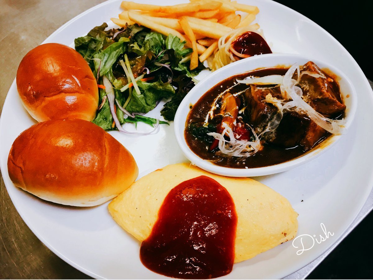 ビーフシチューとオムレツとパンのプレートは女子大好きなわさだのメニュー\(//∇//)\