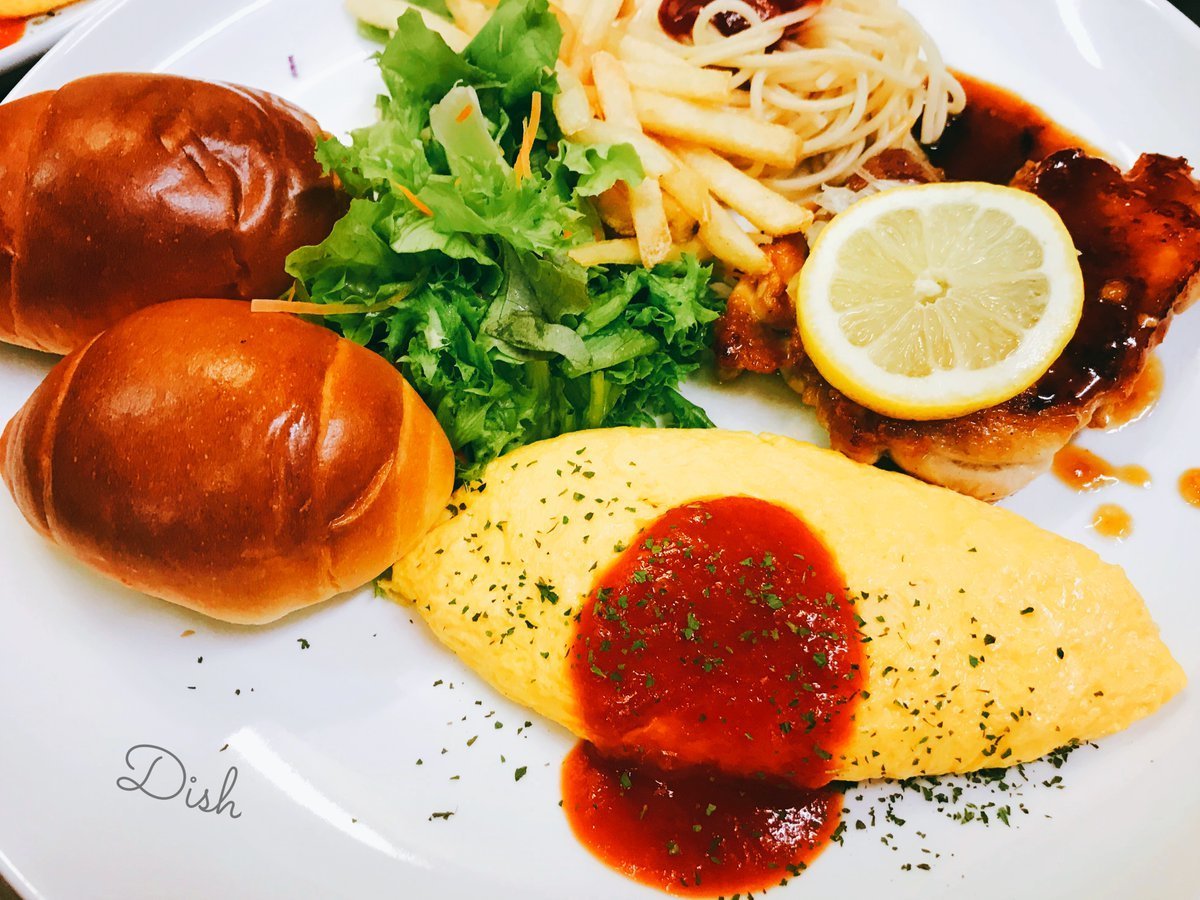 オムレツとパンとチキンレモンステーキのワンプレートはいろいろ乗ったわさだの人気メニュー\(//∇//)\