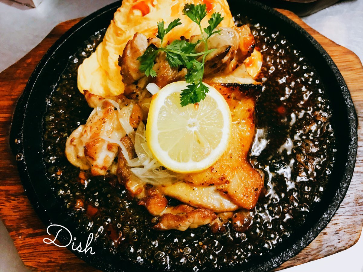 レモンステーキのオムライスは熱々鉄板で供されるわさだの人気メニュー\(//∇//)\
