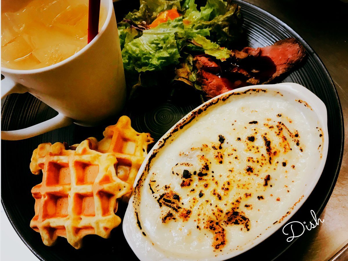 ワッフルとグラタンのワンプレートは軽いお食事好きの女子大人気なわさだのメニュー\(//∇//)\