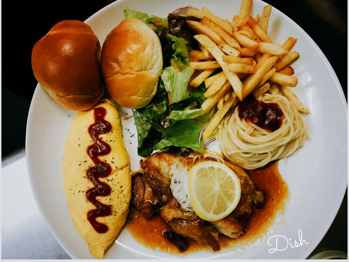 オムレツにチキンレモンにいろいろ乗ったワンプレートはわさだの人気メニュー\(//∇//)\