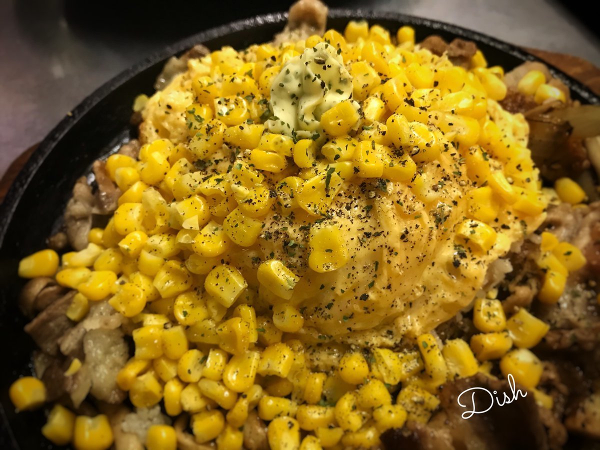コーンたっぷり!ペッパービーフオムライスは熱々鉄板のわさだオムライス\(//∇//)\