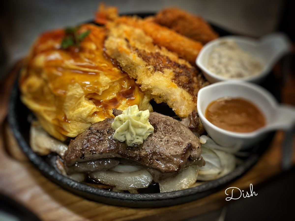大人のお子様ランチは鉄板にいろいろ乗っかったテンション上がるオムライス!\(//∇//)\