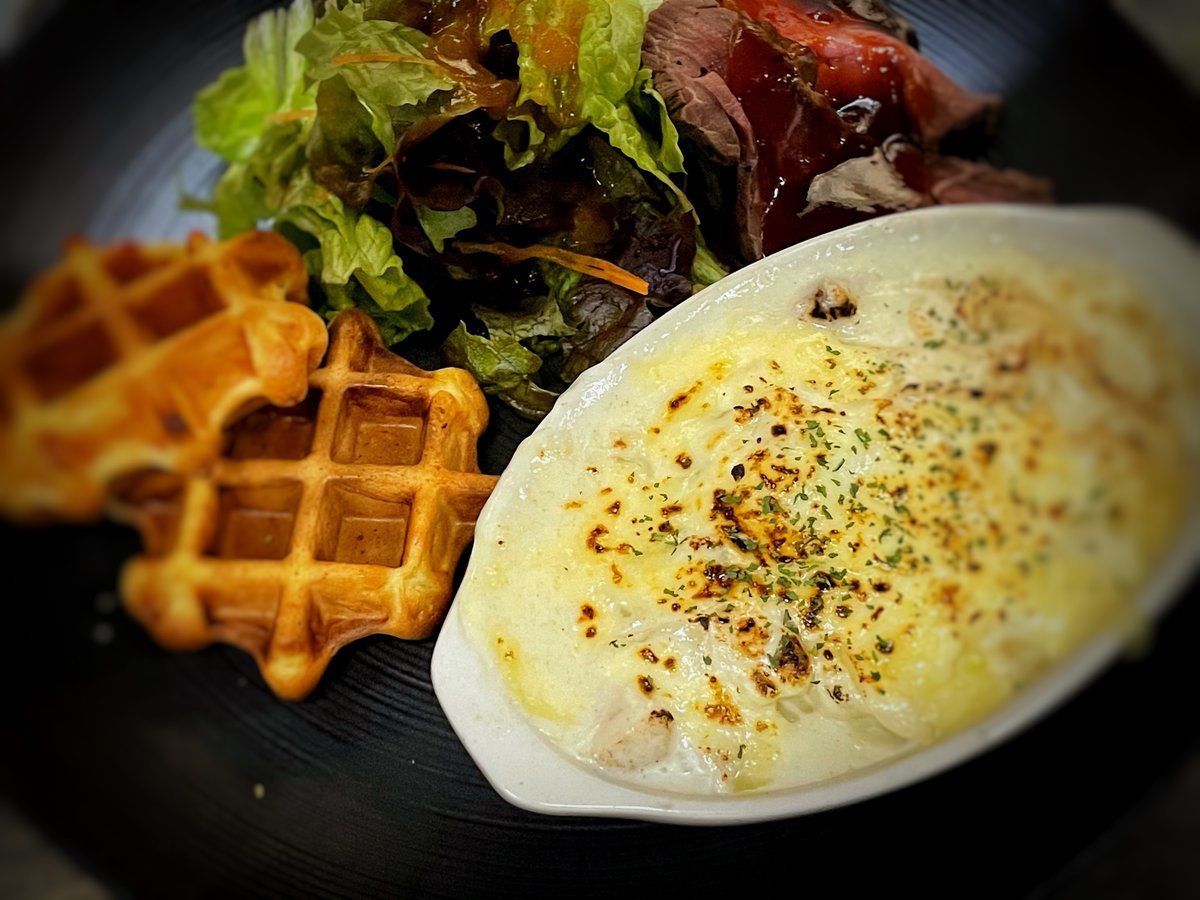 ワッフルとグラタンのプレートは軽めで女子大好きなワンプレート!\(//∇//)\