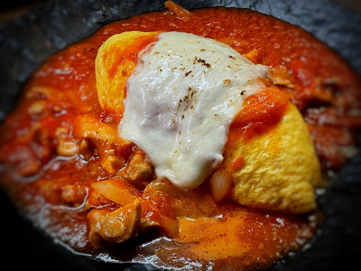 モッツアレラチーズがのーびーる!チキントマトのオムライスはチーズ大好き勢に大人気!\(//∇//)\