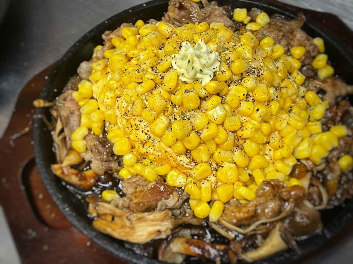 寒い日でも鉄板であつあつ!ペッパービーフオムライスはコーンたっぷりわさだのメニュー!\(//∇//)\