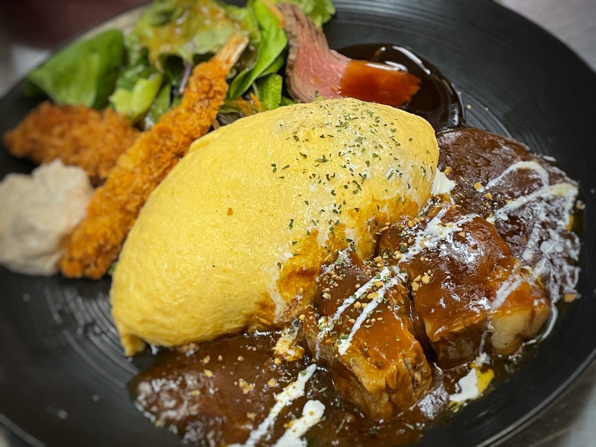 ビーフシチューはスプーンで切れるくらいやわらかく煮込んでます!オムライスと相性抜群!\(//∇//)\